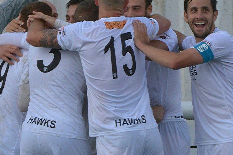 The hawks first opportunity for the hawks came 10 minutes into the second half as Rory Williams played the ball into Alfie Rutherford with the striker seeing the ball go out for a corner. From the resulting corner the ball was punched away by Jack Smith only as far as Rory Williams who volleys the ball sweetly into the top right hand corner to break the deadlock.